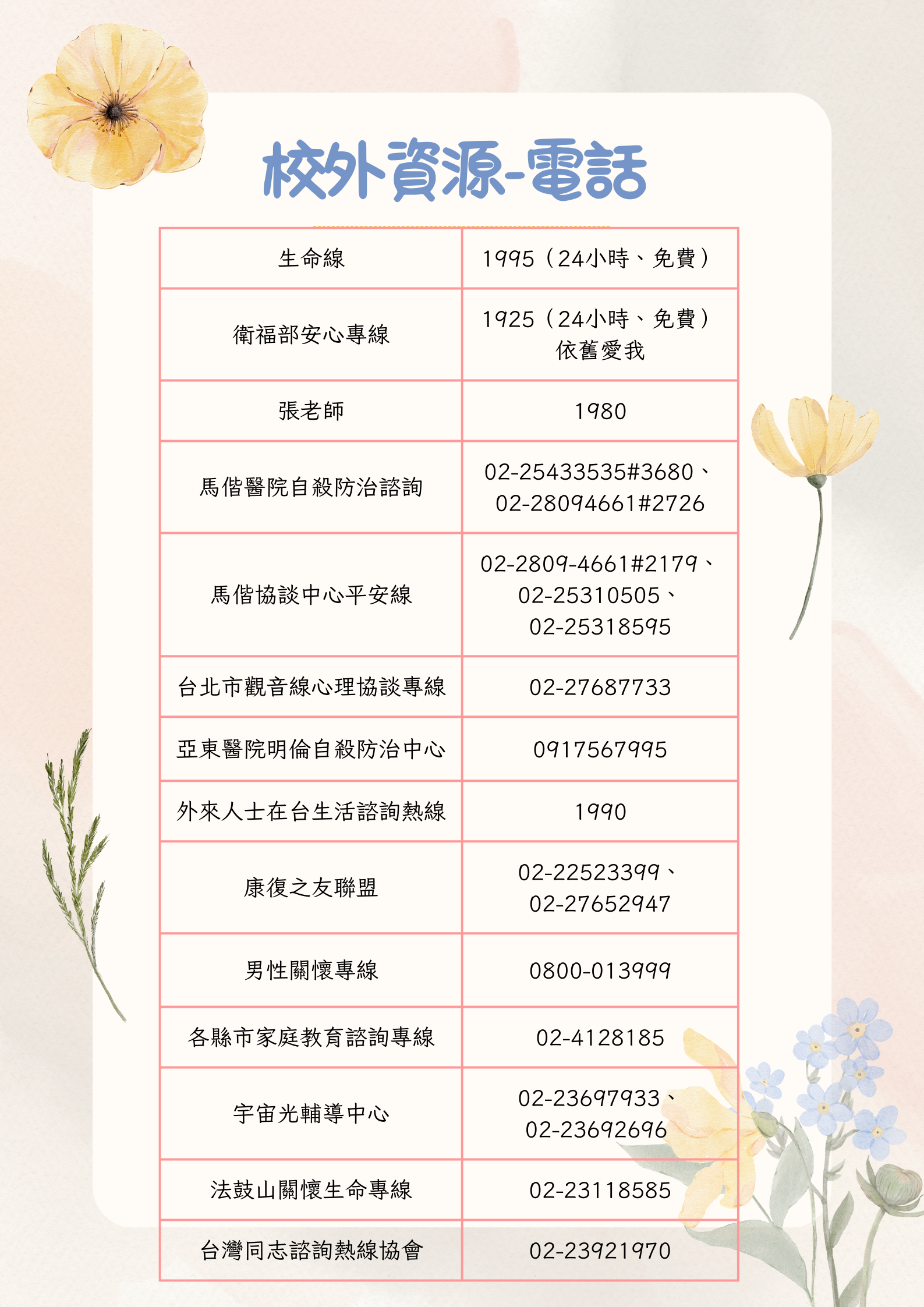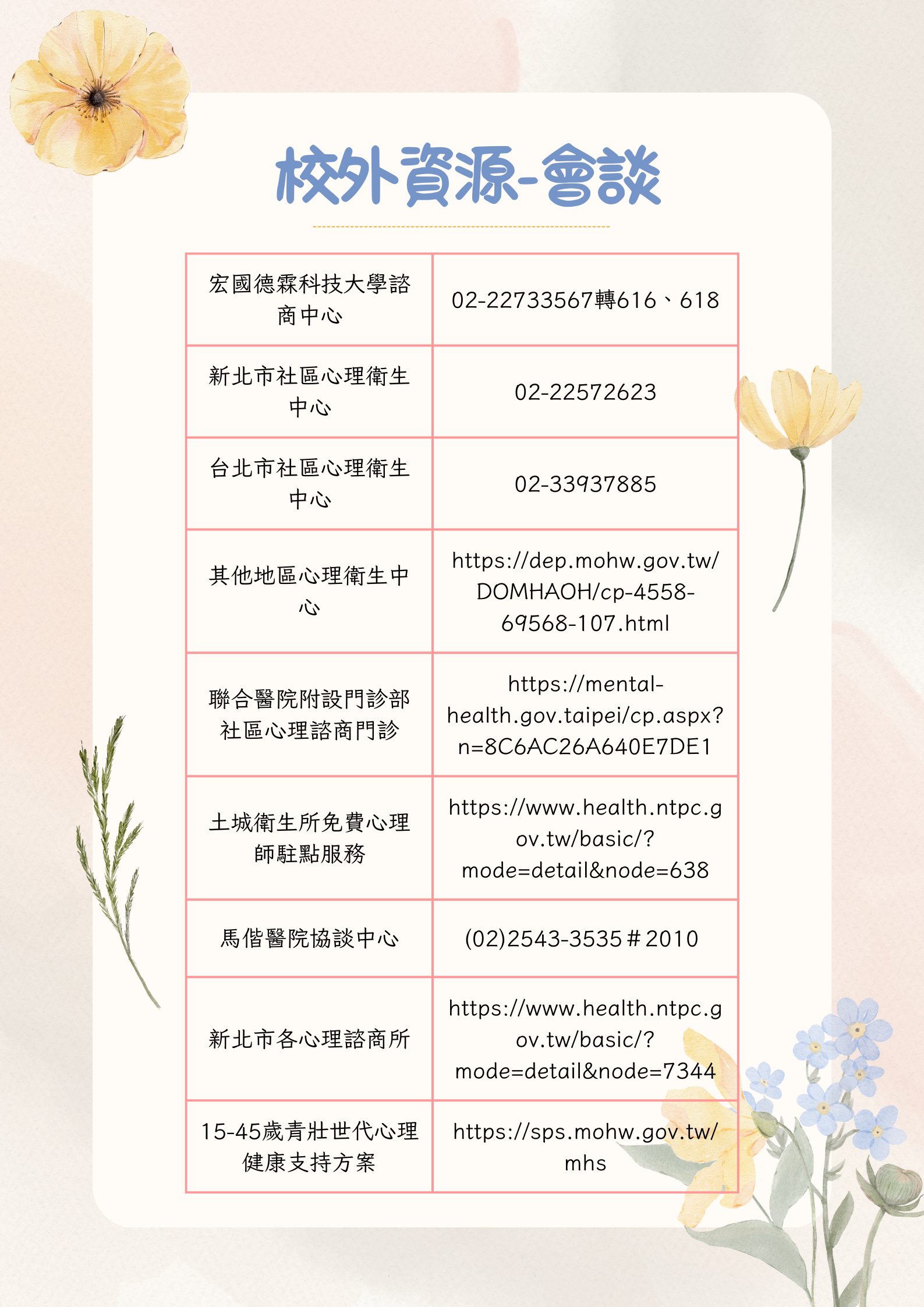 ~校外諮詢與輔導資源~